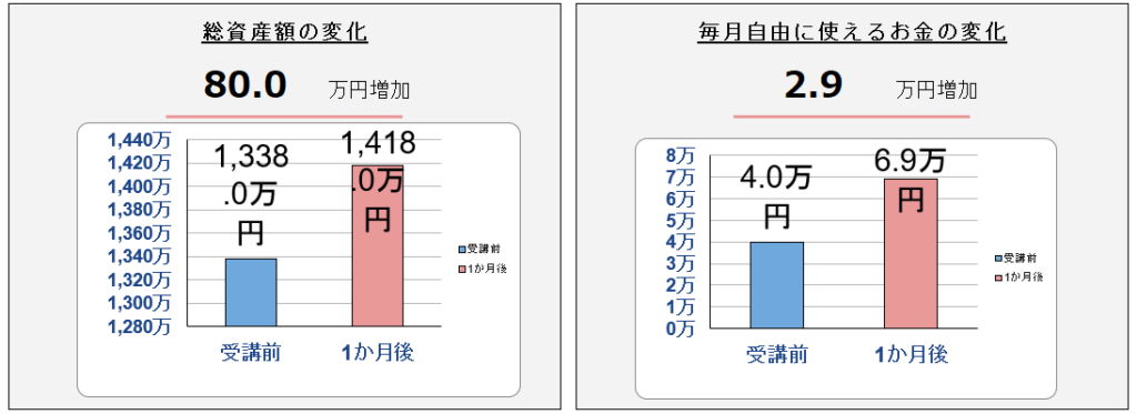 毎月自由に使えるお金にいたっては、月4万円→6.9万円にまで増えています。